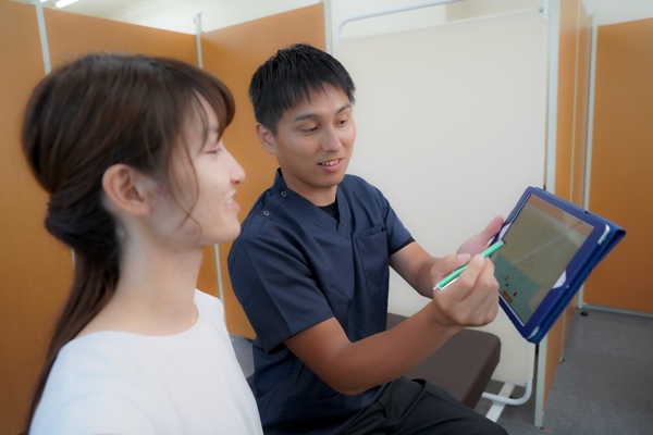 検査によってわかったお身体の情報をお伝えします。 当院の施術内容やお身体についてのお話をして、当院の施術にご理解していただいてから施術に入ります。