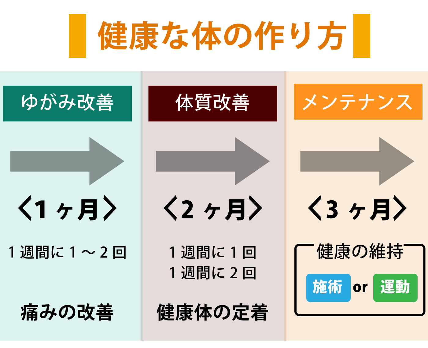 2ヶ月目からは整った体を定着させることを目的として施術をしていきます。