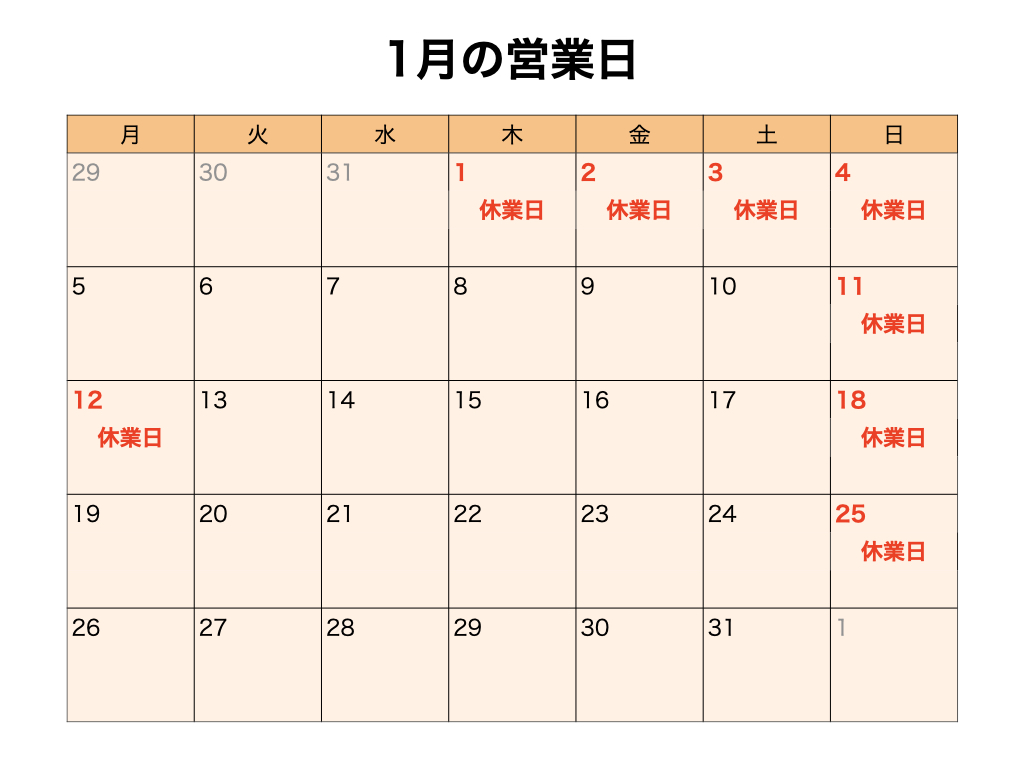 12日(月) 休業日