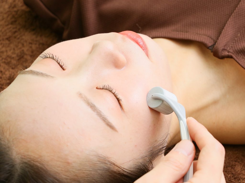 美容鍼は、髪の毛よりも細い鍼で顔のツボや筋肉に刺すことで、お肌が本来持っている「修復・再生する力」を引き出す施術方法です。お肌の表面だけでなく、手では届かない深い組織(内側)から刺激することで、根本からのエイジングケアをおこないます。